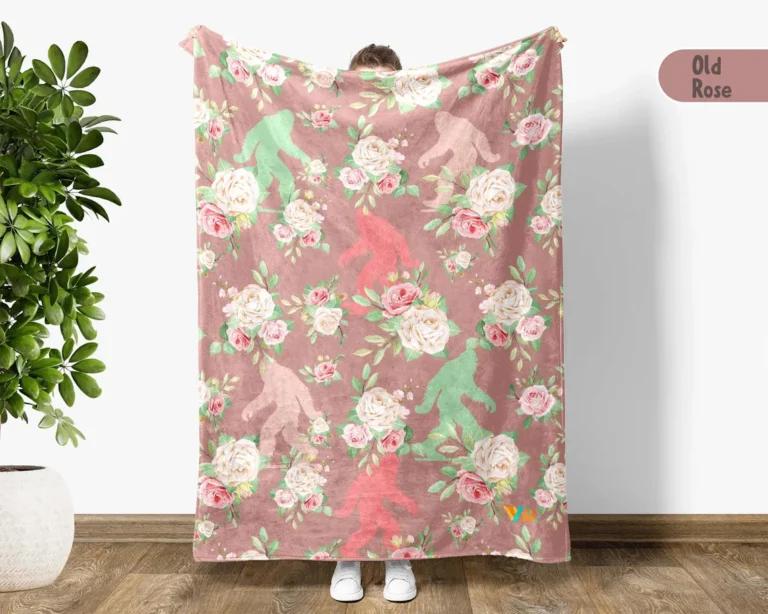 Floral Bigfoot Blanket, Cute Sasquatch Throw for Her, Rose Cryptid Gift, Cozy Blanket for Bigfoot Lovers, Feminine Forest Style Decor