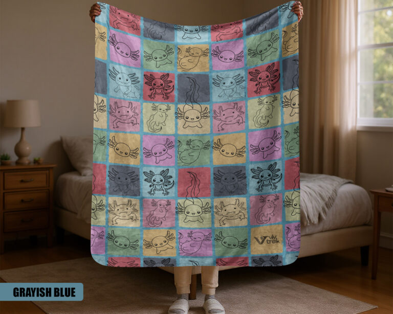 Axolotl Blanket – Vintage Cozy Retro Throw with Cute Axolotl Graphic, Unique Plush Gift for Animal Lovers & Home Décor Fans | VivTrek