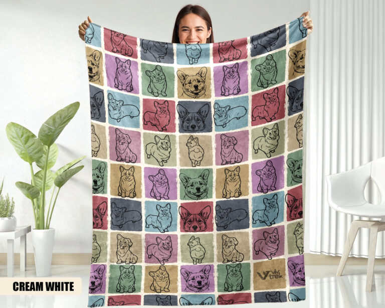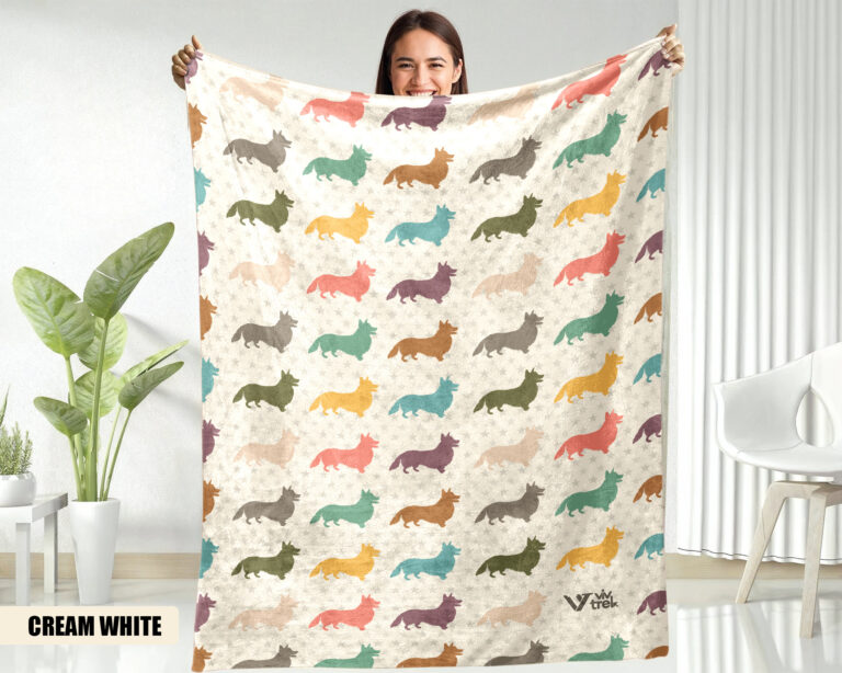 Corgi Blanket – Vintage Cozy Retro Dog Fleece Throw with Corgi Graphic, Unique Soft Pet Lover Gift for Dog Owners & Home Décor | VivTrek
