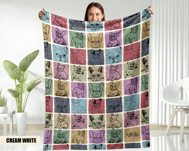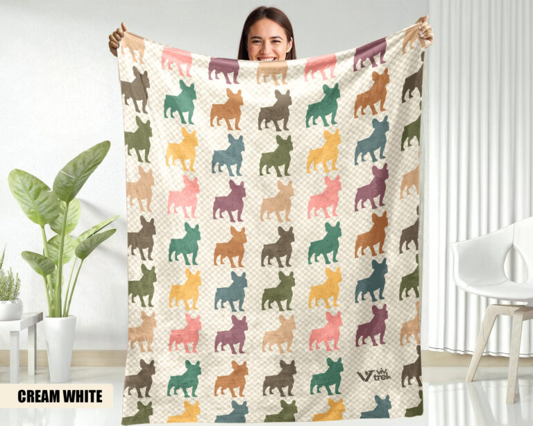 French Bulldog Throw Blanket – Vintage Cozy Retro Blanket Gift for Dog Lovers, Soft Plush Home Décor for Frenchie Fans | VivTrek