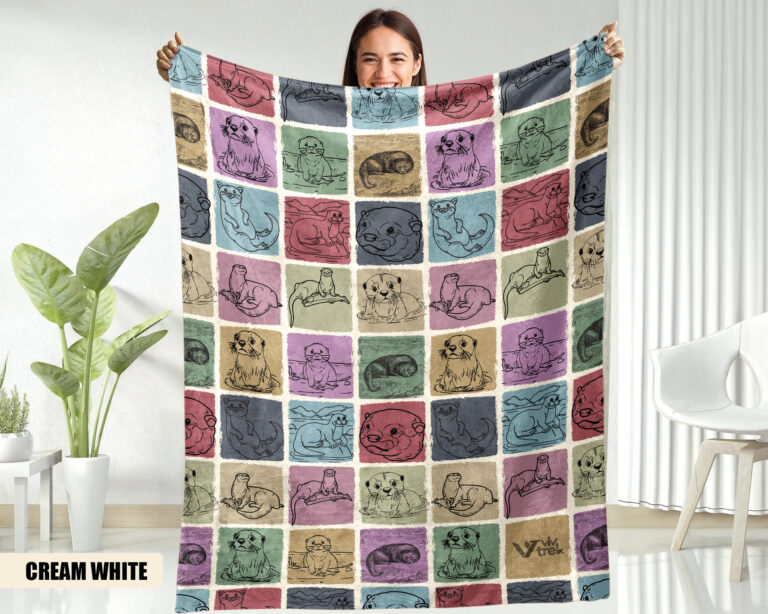 Retro Otter Blanket Gift – Cozy Plush Fleece Throw with Playful Otter Graphic, Unique Sea Life Home Decor & Animal Lover Gift | VivTrek