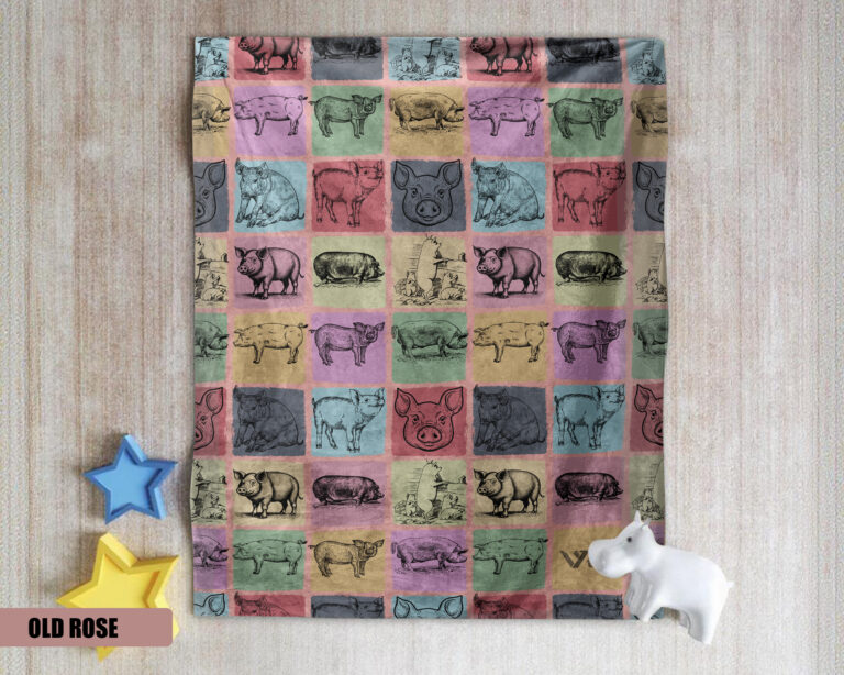 Retro Pig Blanket, Cozy Farm Animal Throw Gift for Pig Lovers, Unique Graphic Home Decor | VivTrek