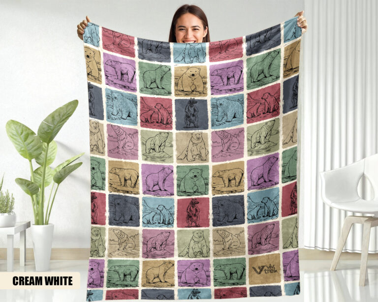 Retro Polar Bear Gift Blanket, Arctic Wildlife Plush Throw, Cozy Graphic Blanket for Animal Lovers, Unique Bear Home Decor and Cute Gift Idea | VivTrek