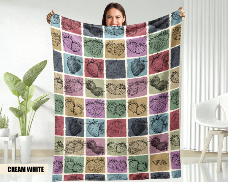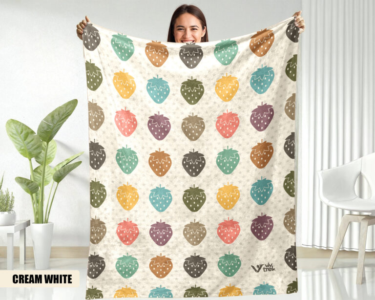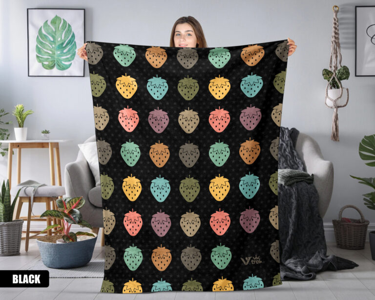 Retro Strawberry Blanket – Fun Fruit Lover Throw with Cute Strawberry Graphic, Cozy Fleece Blanket, Unique Gift for Home & Kitchen Decor | VivTrek