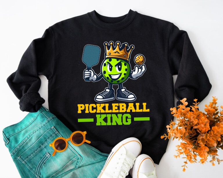 Funny Pickleball King with Pickleball Paddles Sweatshirt, Pickleball Lover Sweater, Trendy Sport Graphics Tshirt